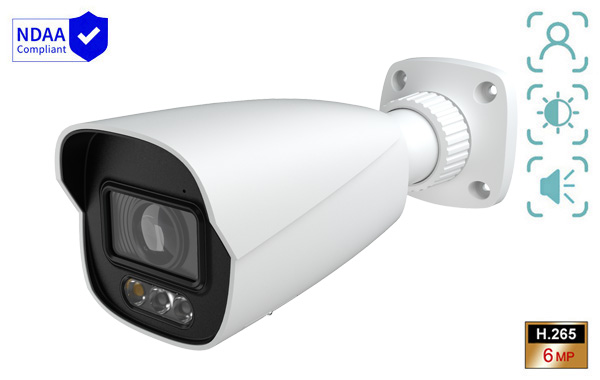 6M Pixel, POE, White Colour, 2.8mm Fixed Lens, Smart Supplement Light, Built-in MIC, Built-in Micro SD Card Slot, Vandalproof, IP 67, ONVIF, 3-Axis, Starlight, Full Colour Night Vision, People and Vehicle Detection, HWDR, Intelligent Analytics
