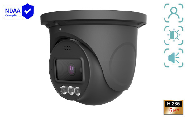 6M Pixel, POE, Charcoal Colour, 2.8mm Fixed Lens, Smart Supplement Light, Built-in MIC, Built-in Micro SD Card Slot, Vandalproof, IP 67, ONVIF, 3-Axis, Starlight, Full Colour Night Vision, People and Vehicle Detection, HWDR, Intelligent Analytics