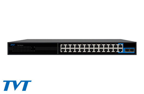 Unmanaged PoE switch with 24x 100Mbps POE ports, 2x 1000Mbps uplink ports and 2*1000M TP/SFP(combo port) ports. Port 1-24 can support IEEE802.3af/at PoE Standard, single-port PoE power up to 30W, built-in 400W power supply